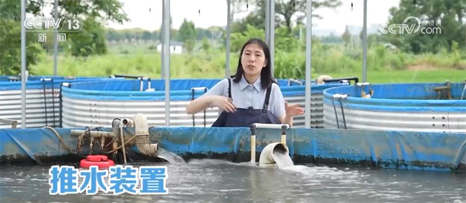 我們知道養魚先養水,水質的要求對養魚非常重要。這么多魚生活在魚池里,它們產生的排泄物以及水中的雜質都會污染水體。那么該如何處理呢?大家可以看到我手邊正在噴水的裝置。我們可以明顯感覺到一股推力。幾個裝置共同作用下,整個魚池的水可以緩慢形成一個移動的漩渦,水中的雜質會隨著水流聚集到魚池中間,通過中間的排污管排入污水處理器。