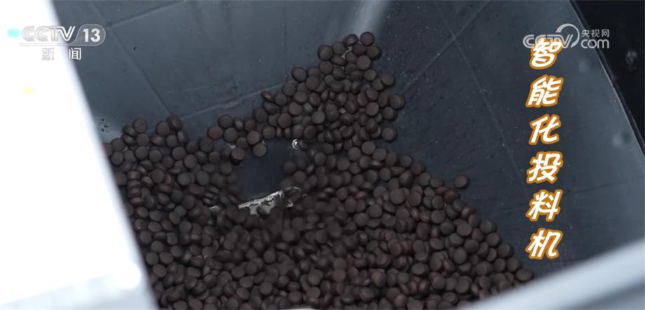 如果魚塘安裝了智能化投料機,在設定好喂食量和喂食時間后,飼料會定時定量地噴灑到水面上,即使不在現場,也能輕松喂養魚類。