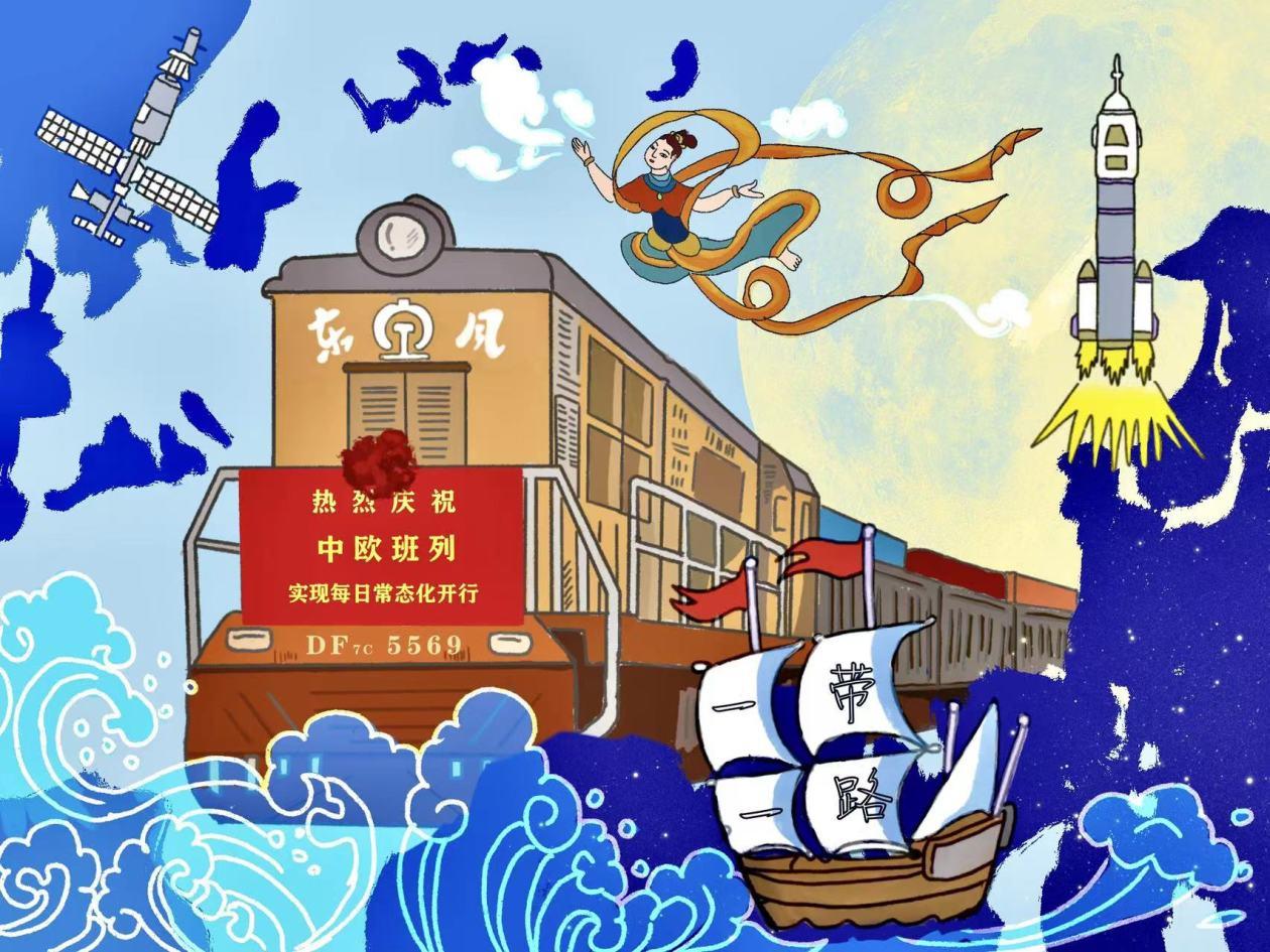 行駛在亞歐大陸上的中歐班列正在繼續書寫新時代的絲綢之路故事,成為高質量共建一帶一路”的生動縮影。(施維翔)