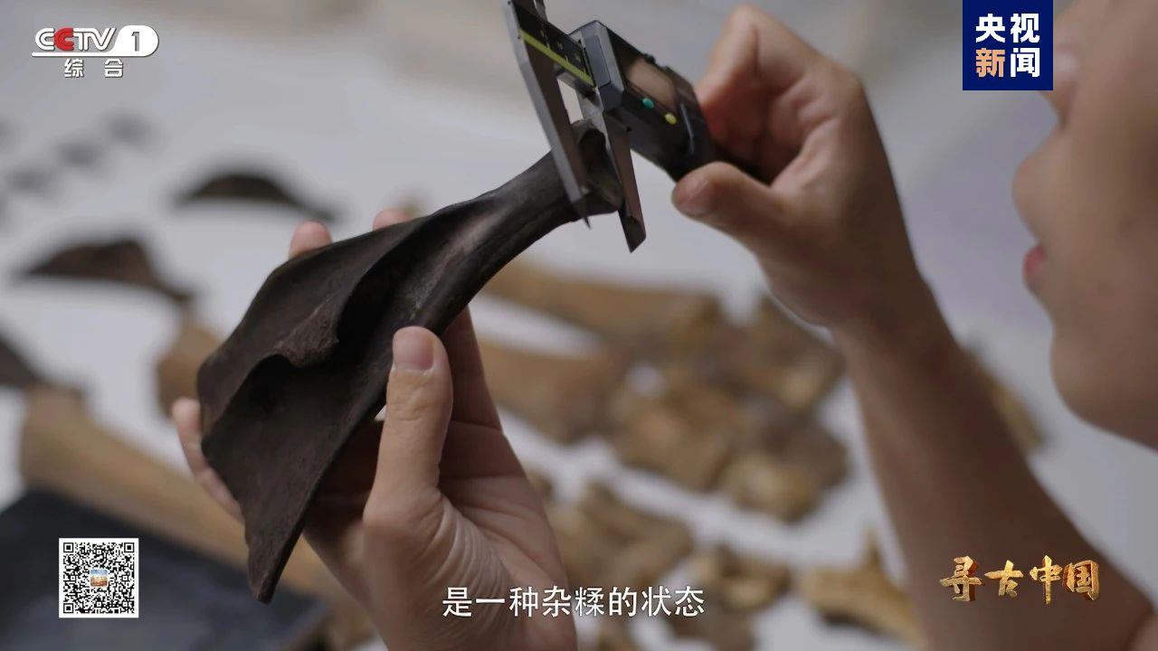 △武漢大學學者正在檢測鄭家湖墓地出土的動物骨骼
