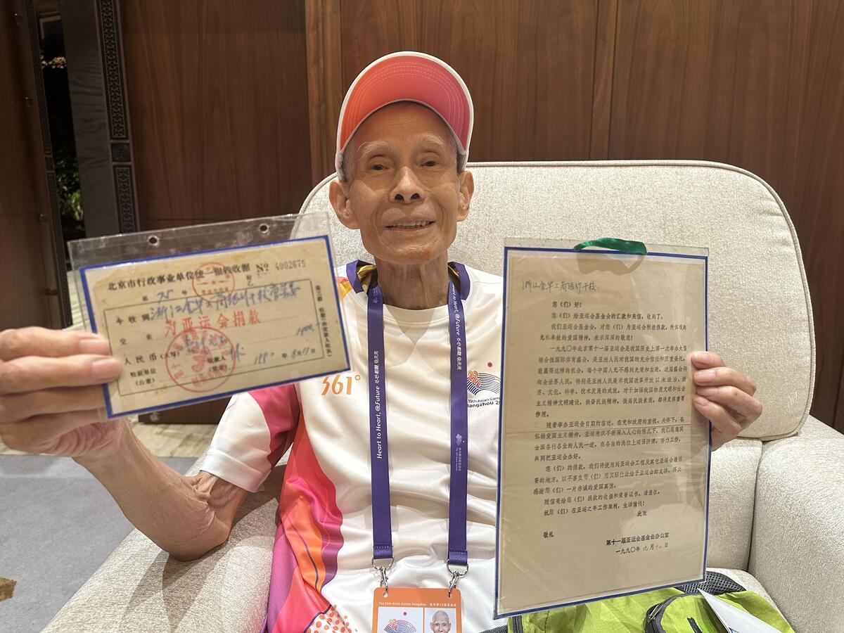“這是北京亞運會捐款收據,還有榮譽證書?!辈軜s安拿出一批老物件回憶,那是中國第一次舉辦國際性的體育賽事,要讓世界看到,中國人,是行的。