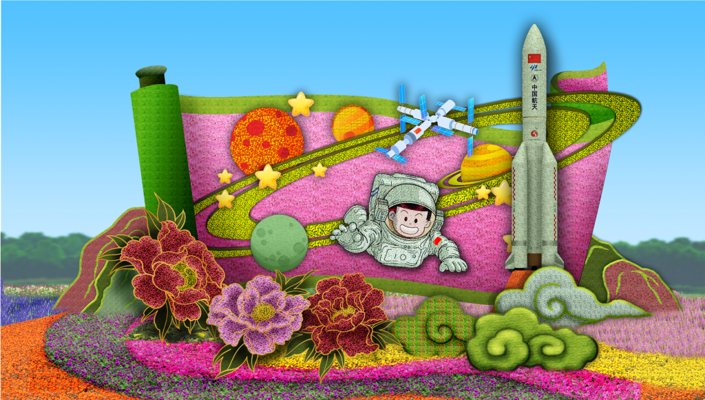 復(fù)興門(mén)東北角“筑夢(mèng)未來(lái)”花壇,以中國(guó)航天員、空間站為主景,講述航天強(qiáng)國(guó)建設(shè)蓬勃發(fā)展,寓意更加絢麗美好的明天。