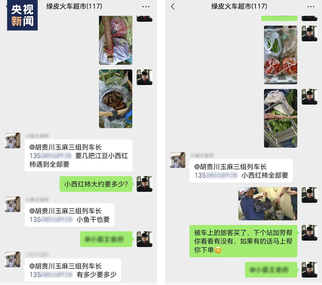 由于常常上門“推銷”,胡貴川漸漸與許多餐廳、農家樂老板熟識,為了方便“賣貨”,他建起了群聊,名為“綠皮火車超市”。每次在站點停靠,他就將大家攜帶的瓜果、蔬菜拍照發(fā)到群里,方便店主選購。