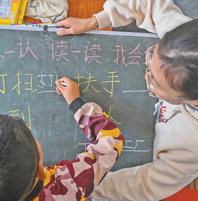 陳艷輝教小宇識字寫字。以上圖片均為郭立亮攝
