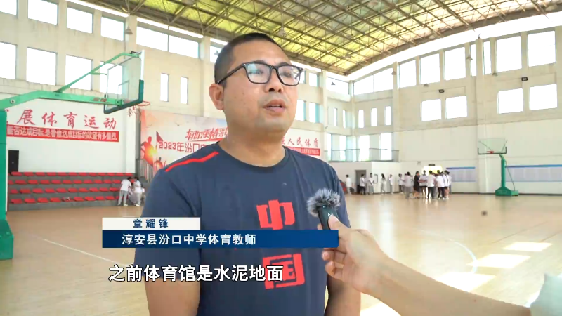 淳安縣汾口中學(xué)體育教師 章耀鋒:之前體育館是水泥地面,運(yùn)動(dòng)很容易起來(lái)灰塵。