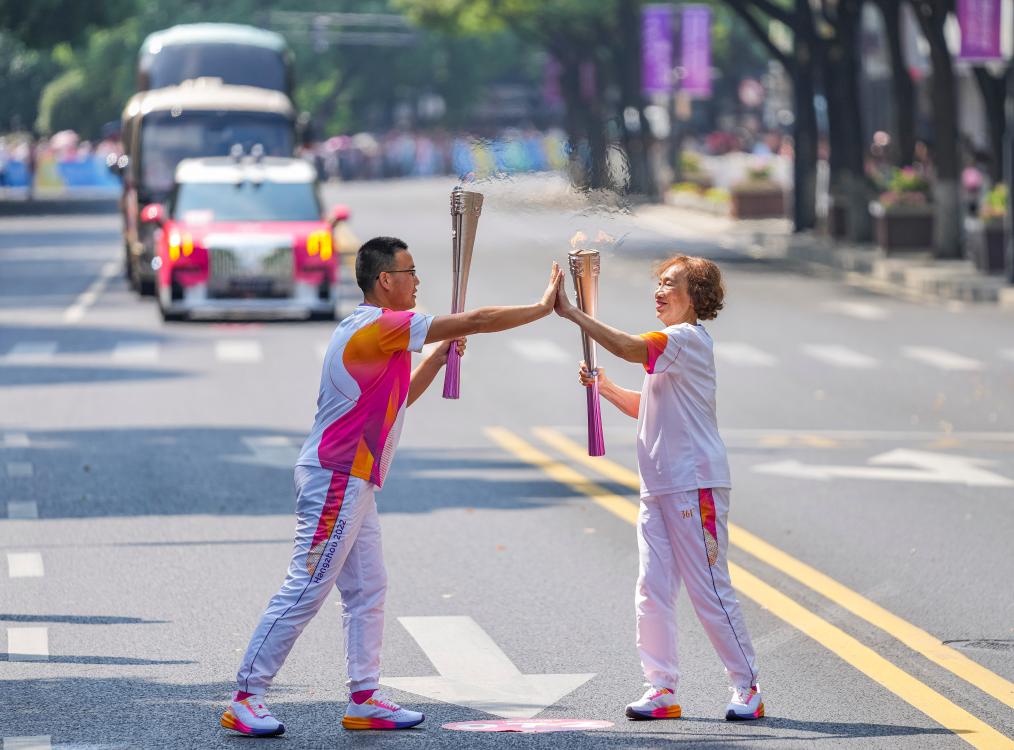 9月8日,杭州亞運會火炬傳遞在西子湖畔的涌金公園廣場正式啟動。