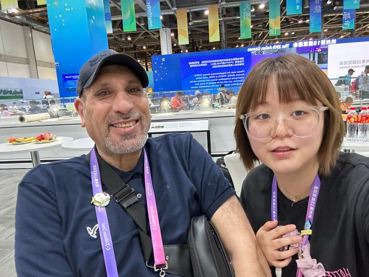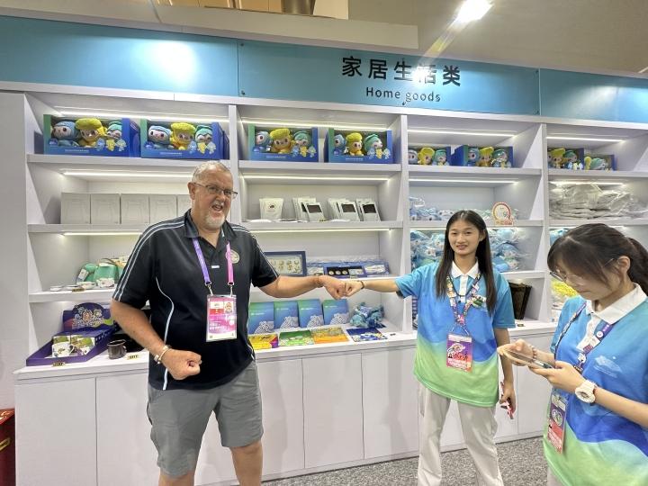 采訪的最后,記者取下“柳浪聞鶯”徽章,贈送給了Nayef。“哈哈,我也要買一些可愛的亞運產品,回去帶給孫子、孫女。”Nayef高興地說。