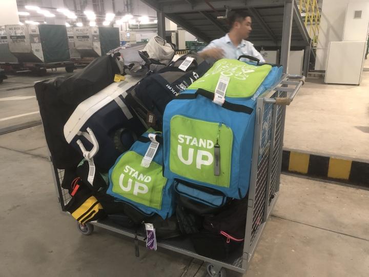 運(yùn)動員攜帶的各類運(yùn)動器械中,除了撐桿這種“大家伙”,還有比如船槳、皮劃艇等超規(guī)大件行李,長度都在3米以上,正常托運(yùn)流程都無法滿足入境條件。
