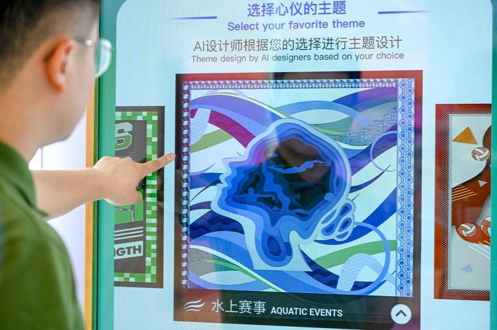 圖為杭州亞運會AI絲巾定制體驗區。(圖片由采訪對象提供)