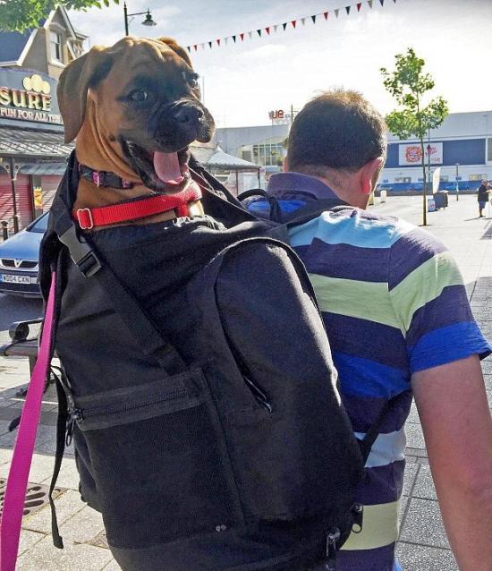 英國一拳師犬患“懶病”每走2英里路得讓主人背