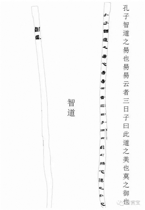 在主墓出土的眾多竹簡中,公布了兩張竹簡圖片,這兩張竹簡為同一支簡的正反面。竹簡反面寫有“智道”,正面寫有: