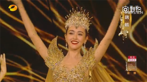 2016金鷹節開幕式于今晚在湖南盛大舉行,隨著影月的響起,新一代金鷹女神唐嫣著金色禮服華麗亮相。她長裙拖地,緩緩走上舞臺,露出甜美笑容,身上散發著閃閃光芒。最后,唐嫣化作“金鷹”,揭開了本屆金鷹獎的大幕。她也繼劉亦菲、李小璐、王珞丹、劉詩詩、趙麗穎之后,成為新一屆金鷹女神。